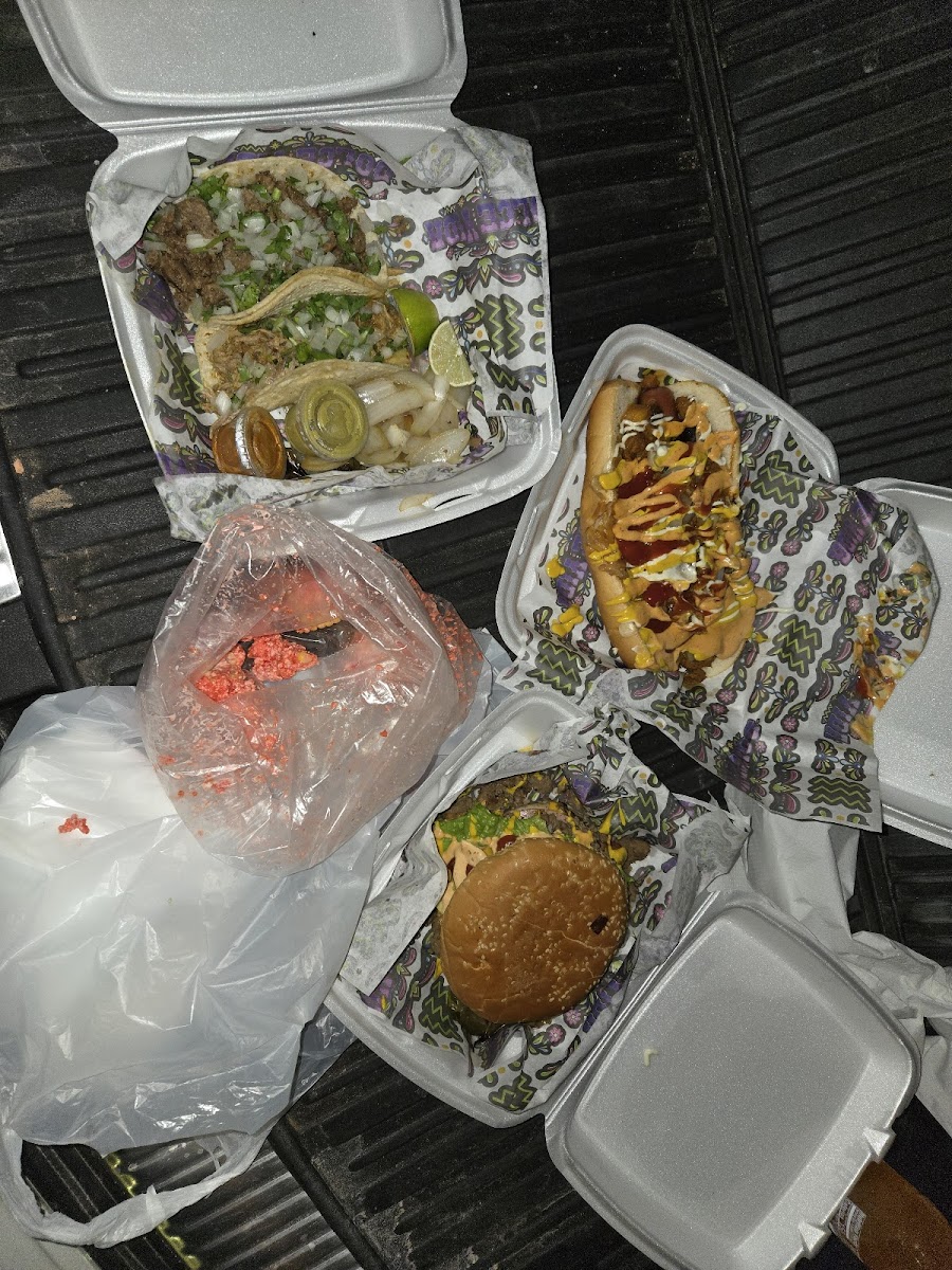Loaded with your choice of protein, Bistec, pollo, pastor, cochinita pibil Hamburger Patty Sliced Sausage ham Avocado American Cheese Grilled Onion Homemade magic Sauce